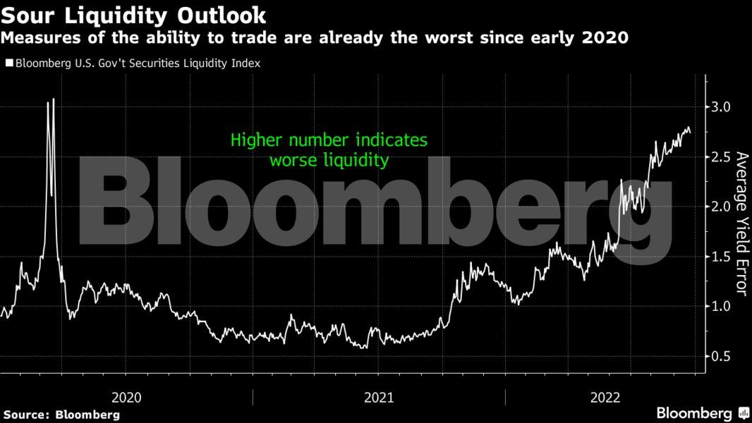 Το τελευταίο κύμα ρευστοποιήσεων προκλήθηκε από τη Fed στη συνεδρίαση της Τετάρτης, όταν η κεντρική τράπεζα των ΗΠΑ αύξησε τα επιτόκιά της στο 3% έως 3,25%, στην τρίτη διαδοχική αύξηση της τάξης των 75 μονάδων βάσης. Οι διαμορφωτές πολιτικής της σηματοδότησαν την πρόθεσή τους να τα αυξήσουν πέραν του 4,50% και να τα κρατήσουν εκεί, ακόμη και εάν αυτό σημαίνει ένα μεγάλο πλήγμα για την οικονομία.