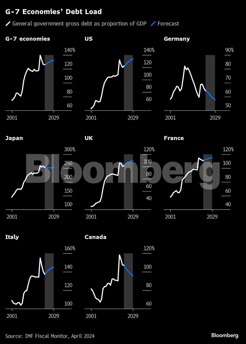 Η ανησυχία για την εκτίναξη των επιπέδων χρέους γίνεται αισθητή σε όλες τις αγορές, όπου τα ιστορικά μεγάλα ελλείμματα σε ορισμένες χώρες των G7 έχουν διατηρήσει ζωντανό τον κίνδυνο των λεγόμενων vigilantes των ομολόγων -ένας όρος για τους επενδυτές σταθερού εισοδήματος που απαιτούν υψηλότερες αποδόσεις για να αντισταθμίσουν τον υπερβολικό κρατικό δανεισμό.