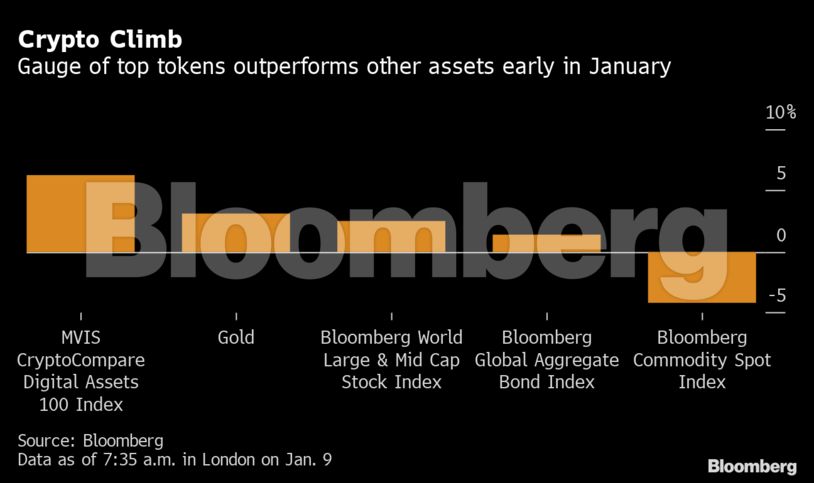 Ο δείκτης MVIS CryptoCompare Digital Assets 100 Index των μεγαλύτερων κρυπτονομισμάτων έχει καταγράψει αύξηση της τάξης του 7% αυτόν το μήνα, ξεπερνώντας την αντίστοιχη του 2% στις μετοχές, του 1% στην αγορά ομολόγων και του 3% στην αγορά χρυσού, σύμφωνα με στοιχεία του Bloomberg.