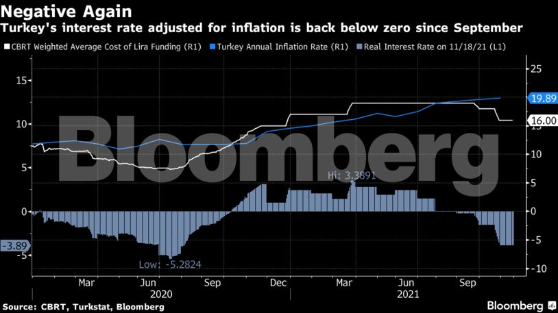 Την περασμένη Τετάρτη ο Ερντογάν ανανέωσε την υπόσχεσή του για χαμηλότερα επιτόκια, στέλνοντας την ισοτιμία της τουρκικής λίρας έναντι του δολαρίου σε νέα ιστορικά χαμηλά επίπεδα. Χρησιμοποιώντας ισλαμικά τσιτάτα που απαγορεύουν την τοκογλυφία, επανέλαβε την ανορθόδοξη θεωρία του πως τα υψηλά κόστη δανεισμού επιδεινώνουν τον πληθωρισμό αντί να τον περιορίζουν.