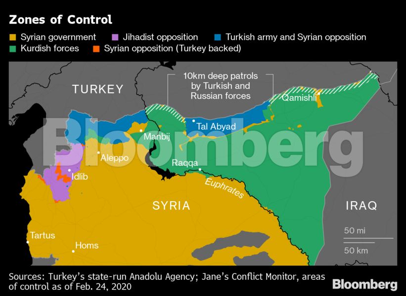 Μετά από μια στρατιωτική αναμέτρηση της Τουρκίας στα συριακά εδάφη, που είχαν ως αποτέλεσμα τις χειρότερες απώλειες του τουρκικού στρατού σε όλη την εμπλοκή του στο συριακό πρόβλημα, ο Ερντογάν θέλει ο Πούτιν να αποδεχθεί το σχέδιο του για την χάραξη μιας νέας ζώνης ελέγχου στη βορειοδυτική επαρχία Ιντλίμπ της Συρίας, με σκοπό την επανεγκατάσταση εκατομμυρίων προσφύγων, σύμφωνα με ανώτερους αξιωματούχους της Άγκυρας που είναι γνώστες της πολιτικής της Τουρκίας. Αυτό έρχεται σε σύγκρουση με την επιμονή του Πούτιν ότι οι δυνάμεις του προέδρου της Συρίας Μπασάρ αλ-Ασαντ πρέπει να ανακτήσουν τον έλεγχο του συνόλου της επικράτειάς του.