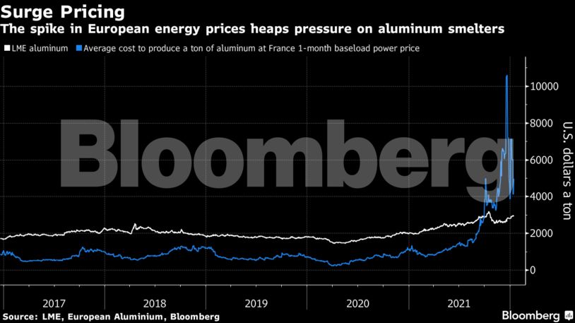 Κύρια θύματα της υπέρογκης αύξησης του ενεργειακού κόστους είναι οι παραγωγοί αλουμινίου και ψευδαργύρου. Η έλλειψη των πρώτων υλών αυτών έχει οδηγήσει σε κάθετες αυξήσεις των προϊόντων, ενώ η συνολική ευρωπαϊκή παραγωγή αλουμινίου έχει μειωθεί κατά 30% (650.000 τόνους) λόγω της κρίσης, σύμφωνα με τα στοιχεία της Eurometaux.