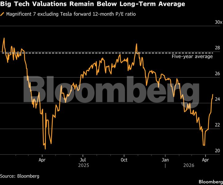 Ωστόσο, η διόρθωση έχει καταστήσει τις αποτιμήσεις πιο ελκυστικές. Εξαιρουμένης της Tesla Inc., οι «Magnificent Seven» διαπραγματεύονται περίπου 24 φορές τα προβλεπόμενα κέρδη, από 29 φορές τον Οκτώβριο και κοντά στον μέσο όρο του S&P 500.