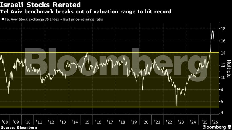 Οι ισραηλινές μετοχές ξεφεύγουν από ένα εύρος αποτιμήσεων στο οποίο ήταν εγκλωβισμένες για σχεδόν δύο δεκαετίες, με τους επενδυτές να καταβάλλουν πολλαπλάσια κέρδη-ρεκόρ για να τις αποκτήσουν, ποντάροντας στο ότι η χώρα είναι έτοιμη για μια μεταπολεμική οικονομική άνθηση καθοδηγούμενη από την τεχνολογία.