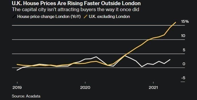 Οι λόγοι για την ανάπτυξη της αγοράς είναι προφανείς: φθηνά στεγαστικά δάνεια, μία μετά-πανδημική ζήτηση μεγαλύτερων κατοικιών, η αποκέντρωση των επαγγελματιών και ένας φόβος πως “είτε τώρα είτε ποτέ”.