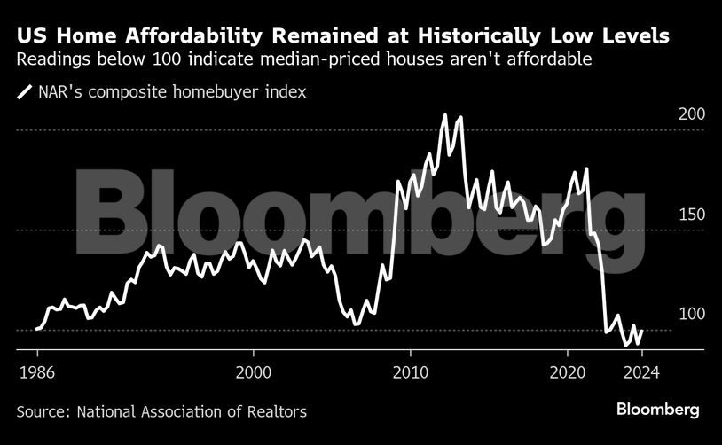 Ενώ οι πωλήσεις έχουν σταθεροποιηθεί κάπως φέτος, παραμένουν κάτω από τα προ-πανδημικά επίπεδα. Στην αγορά μεταπώλησης – η οποία αντιπροσωπεύει την πλειονότητα των αγορών κατοικιών – η Εθνική Ένωση Κτηματομεσιτών των ΗΠΑ αναμένει ότι ο ρυθμός των πωλήσεων του 2024 κυμάνθηκε ακόμη χαμηλότερα από πέρυσι, που ήταν ήδη το χειρότερο έτος από το 1995.