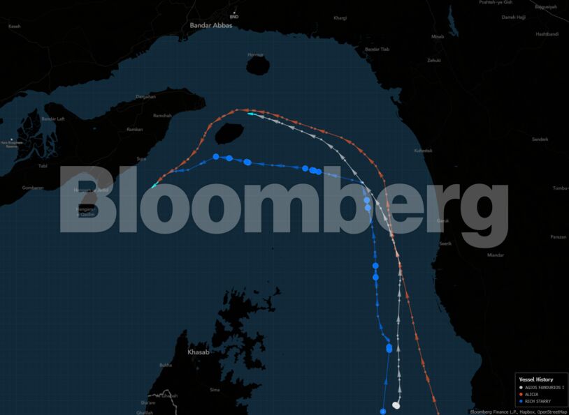 Δίπλα του πλέει και ένα ακόμη άδειο VLCC υπό αμερικανικές κυρώσεις, το Alicia. Το υπερδεξαμενόπλοιο αυτό, που κυρώθηκε πέρυσι με την προηγούμενη ονομασία του, Montrose, λόγω των δεσμών του με το ιρανικό πετρελαϊκό εμπόριο, βρίσκεται τώρα ανάμεσα στα νησιά Λαράκ και Κεσμ του Ιράν. Για σύντομο διάστημα είχε δηλώσει ως προορισμό τη Βασόρα του Ιράκ, όμως στη συνέχεια άλλαξε σήμα, αναφέροντας επίσης ότι «αναμένει εντολές».