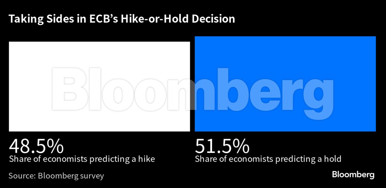 Σήμερα συνεδριάζει η Ευρωπαϊκή Κεντρική Τράπεζα και οι traders ενισχύουν τα στοιχήματά τους, ότι τελικά θα προχωρήσει σε αύξηση επιτοκίων κατά 25 μονάδες βάσης και δεν θα σταματήσει την πολιτική της νομισματικής σύσφιξης λόγω ανησυχιών ότι η Ευρωζώνη αντιμετωπίζει εκ νέου έναν επίμονα υψηλό πληθωρισμό, όπως τονίζει το πρακτορείο Bloomberg. Συγκεκριμένα 34 οικονομολόγοι που συμμετείχαν στην έρευνα του πρακτορείου οικονομικών ειδήσεων προβλέπουν παύση, ενώ 32 προβλέπουν αύξηση. Οι αγορές χρήματος τοποθετούν στο 70% την πιθανότητα νέας αύξησης στα ευρωπαϊκά επιτόκια. Το συγκεκριμένο ποσοστό είναι αισθητά υψηλότερο σε σχέση με το 20% στις αρχές του Σεπτεμβρίου.