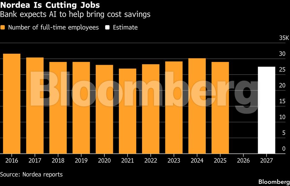 Η Nordea είναι η τελευταία τράπεζα που προχωρά σε περικοπές προσωπικού υπέρ της χρήσης μοντέλων τεχνητής νοημοσύνης, ακολουθώντας διεθνείς ομίλους όπως η Goldman Sachs Group, η ING Groep και η Commonwealth Bank of Australia.