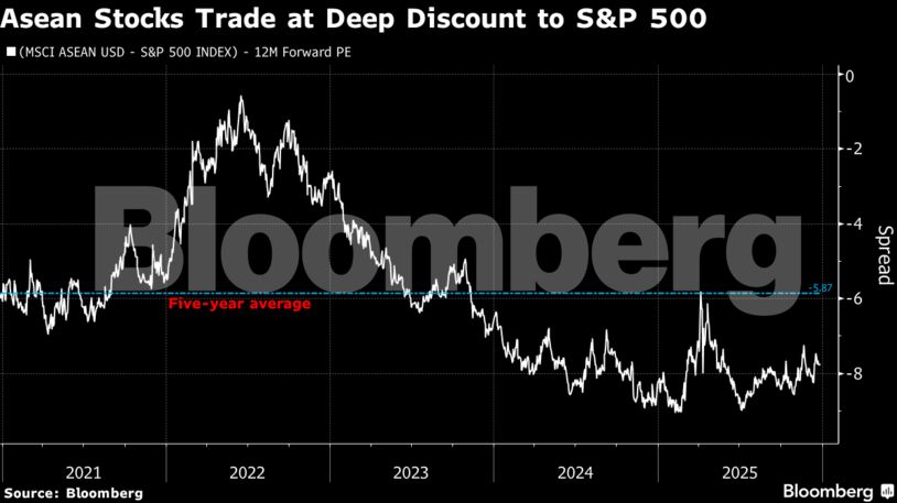 Η έλλειψη μετοχών που συνδέονται με τον ανθηρό τομέα της τεχνητής νοημοσύνης ήταν ένας από τους βασικούς λόγους για τους οποίους ο δείκτης MSCI Asean υστερεί κατά περίπου 13 ποσοστιαίες μονάδες από τον ευρύτερο δείκτη της Ασίας-Ειρηνικού το 2025, το μεγαλύτερο ποσοστό των τελευταίων πέντε ετών. Εκτός από τις προσιτές αποτιμήσεις, η περιοχή προσελκύει διαχειριστές κεφαλαίων που επιθυμούν να βρουν εναλλακτικές λύσεις για την υψηλή έκθεσή τους σε μετοχές τεχνολογίας, δεδομένων των ανησυχιών για μια φούσκα τεχνητής νοημοσύνης.