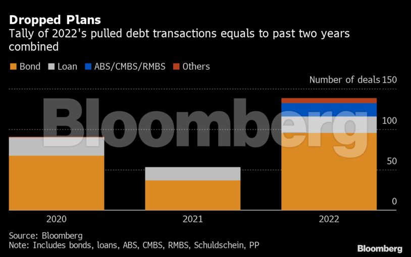 Περίπου 140 προσπάθειες άντλησης κεφαλαίων συνολικής αξίας τουλάχιστον $75 δισεκατομμυρίων ακυρώθηκαν φέτος, αγγίζοντας σχεδόν το σύνολο των δύο προηγουμένων «πανδημικών» ετών, σύμφωνα με πρόσφατη ανάλυση του Bloomberg.