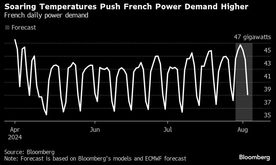Το νέο κύμα καύσωνα που θα πλήξει αυτή την εβδομάδα την Ευρώπη αναμένεται να πιέσει ιδιαίτερα την ενεργειακή αγορά της Γαλλίας, εν μέσω των Ολυμπιακών Αγώνων στο Παρίσι, επηρεάζοντας και γειτονικές χώρες που προμηθεύει η Γαλλία.