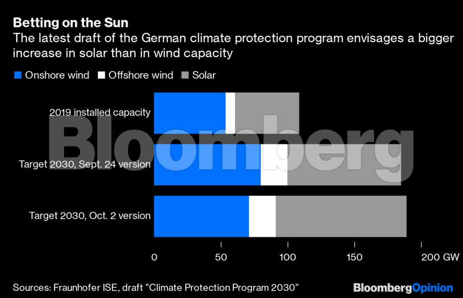 Καθώς η Γερμανία προετοιμάζεται να εγκρίνει το σχέδιό της για την προστασία του κλίματος μέχρι το 2030, η κυβέρνηση οφείλει να αποφασίσει εάν θα δώσει προτεραιότητα στην ηλιακή ή την αιολική ενέργεια. Η τελευταία έκδοση του σχεδίου προσανατολίζεται προς την ηλιακή ενέργεια και αυτό είναι λογικό από οικονομική άποψη, αλλά επίσης δείχνει μια ανεπιθύμητη στροφή για την υπάρχουσα βιομηχανία ανανεώσιμων πηγών ενέργειας, η οποία τώρα επικεντρώνεται κυρίως στον αέρα.