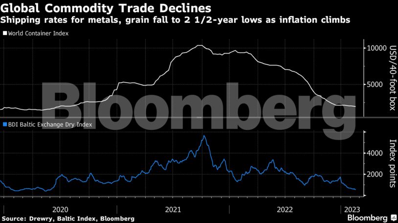 Το κόστος των εμπορευματοκιβωτίων δέχεται πιέσεις λόγω της μειωμένης ζήτησης και του αυξημένου πληθωρισμού. Ο συνολικός εμπορικός όγκος μεταλλευμάτων όπως ο σίδηρος και το ατσάλι έχει περιοριστεί, ενώ οι καταναλωτές ξοδεύουν λιγότερα σε τρόφιμα ή αγαθά κατασκευασμένα από πλαστικό. Αυτό, με τη σειρά του, έχει μειώσει τη ζήτηση για μεταφορές, περιορίζοντας τις τιμές των εμπορευματοκιβωτίων σε χαμηλό δυόμιση ετών.