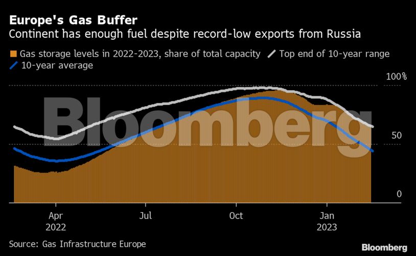 Η Ευρώπη έχει αυξημένα αποθέματα φυσικού αερίου παρά τη μείωση των ρωσικών ροών. Δεδομένης της προσπάθειας εξοικονόμησης ενέργειας, της ενίσχυσης των αποθεμάτων και του ηπιότερου από τον αναμενόμενο χειμώνα, η ζήτηση έχει παραμείνει μειωμένη τη στιγμή που οι εισαγωγές LNG έχουν αυξηθεί κατακόρυφα. Τα ευρωπαϊκά benchmark futures έχουν μειωθεί από το υψηλό Αυγούστου υπό των 50 ευρώ/μεγαβατώρα για πρώτη φορά εδώ και 17 μήνες.