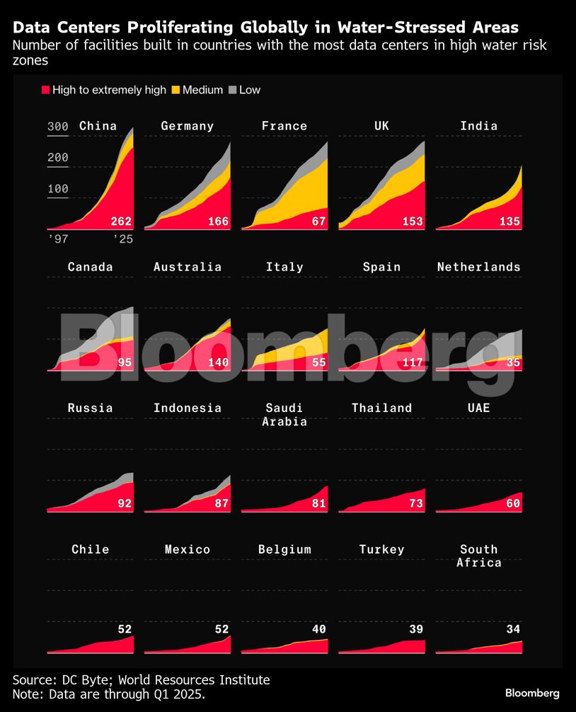 Τα κέντρα δεδομένων που τροφοδοτούν την τεχνητή νοημοσύνη καταναλώνουν τεράστιες ποσότητες νερού για την ψύξη των θερμών διακομιστών και, έμμεσα, από την ηλεκτρική ενέργεια που απαιτείται για τη λειτουργία των εγκαταστάσεων. Ωστόσο, περίπου τα δύο τρίτα των νέων κέντρων δεδομένων ή εκείνων που αναπτύσσονται από το 2022 και μετά βρίσκονται σε μέρη που πλήττονται από την πίεση του νερού. Άγονες περιοχές όπως ο νότος των ΗΠΑ, η Σαουδική Αραβία και τα Ηνωμένα Αραβικά Εμιράτα βρίσκονται σε έναν αγώνα δρόμου για την κατασκευή των κέντρων ώστε να διεκδικήσουν ένα κομμάτι από πίτα της τεχνητής νοημοσύνης. Και στην Κίνα και την Ινδία, ένα ακόμη μεγαλύτερο ποσοστό των κέντρων βρίσκεται σε μέρη ξηρότερα από εκείνα των ΗΠΑ, σύμφωνα με ανάλυση του Bloomberg. Η κατάσταση φέρνει «δίψα» για δεδομένα αντιμέτωπη με τις κοινότητες που αγωνίζονται να αποκτήσουν πρόσβαση σε καθαρό νερό.
