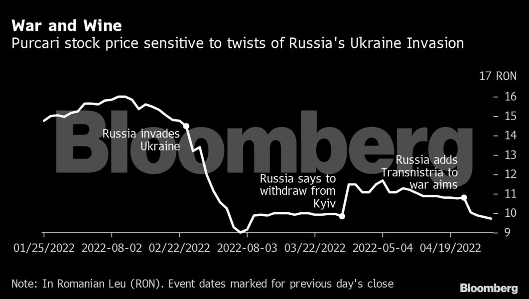 Η μετοχή της Purcari έχασε περίπου το 40% της αξίας της, τις πρώτες μέρες του πολέμου στην Ουκρανία. Κατάφερε ωστόσο, να ανακτήσει μέρος των κερδών της όταν τα στρατεύματα της Μόσχας αποσύρθηκαν από την πόλη του Κίεβου και η σύγκρουση φαινόταν να μετατοπίζεται ανατολικά.