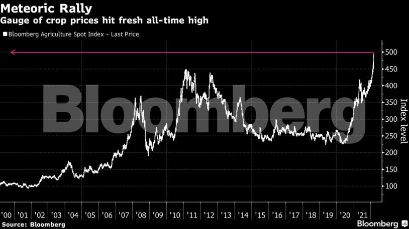 Υπάρχουν προβλέψεις για ακόμη υψηλότερες τιμές, αυξάνοντας τις πιέσεις στον πληθωρισμό των τροφίμων και ενώ βαθαίνει το δίλημμα των κεντρικών τραπεζών για το πόσο πολύ θα αυξήσουν τα επιτόκια σε μια εποχή που ο πόλεμος και οι κυρώσεις βλάπτουν την ανάπτυξη και ρίχνουν τη σκιά τους στην παγκόσμια οικονομία για μεγάλο χρονικό διάστημα.