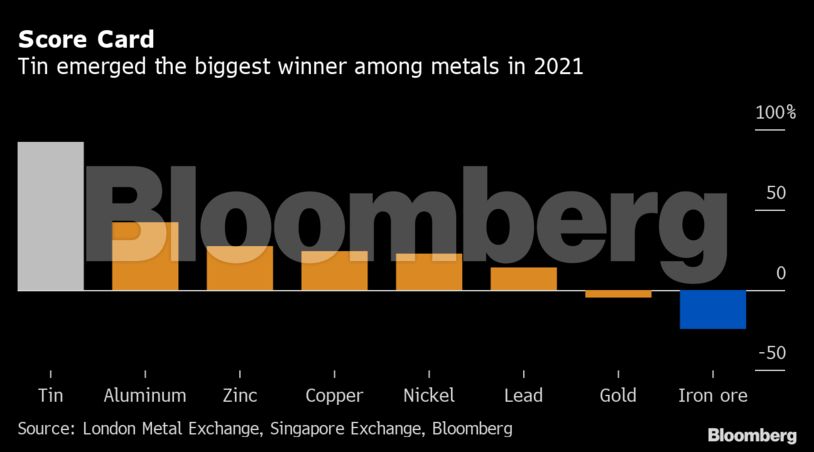 Αν και ο κασσίτερος συχνά δε θεωρείται ο «σταρ» των μεταλλευμάτων, αποτέλεσε το μεγάλο νικητή του 2021. Οι τιμές του μετάλλου έχουν σχεδόν διπλασιαστεί σε σχέση με το 2020, λόγω της αύξησης ζήτησης των ηλεκτρονικών και των προβλημάτων στην εφοδιαστική αλυσίδα που προκάλεσε η πανδημία.