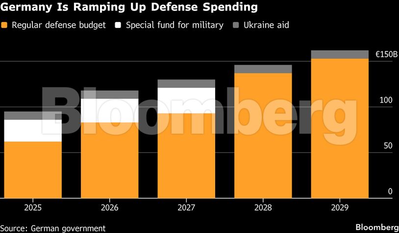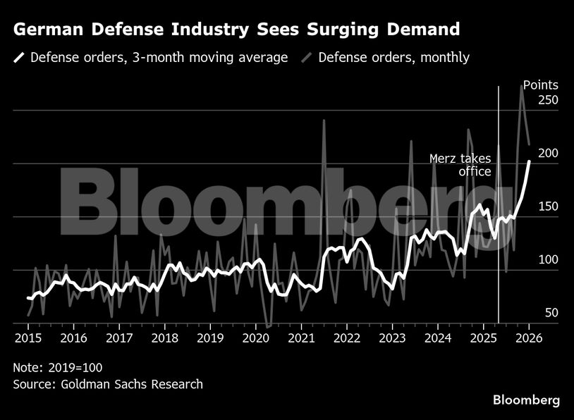 Ο καγκελάριος Φρίντριχ Μερτς έχει διαθέσει αρχικά 600 δισεκατομμύρια ευρώ για την άμυνα της Γερμανίας. Αυτό που ξεκίνησε ως γεωπολιτική αναγκαιότητα μετατρέπεται σε σημαντικό οικονομικό κίνητρο, καθώς η απλοποιημένη διαδικασία προμηθειών βοηθά τους παραγωγούς να εξασφαλίσουν ρεκόρ παραγγελιών για τα πάντα, από πυρομαχικά έως drones. Οι τράπεζες επίσης παρέχουν δάνεια πιο εύκολα.