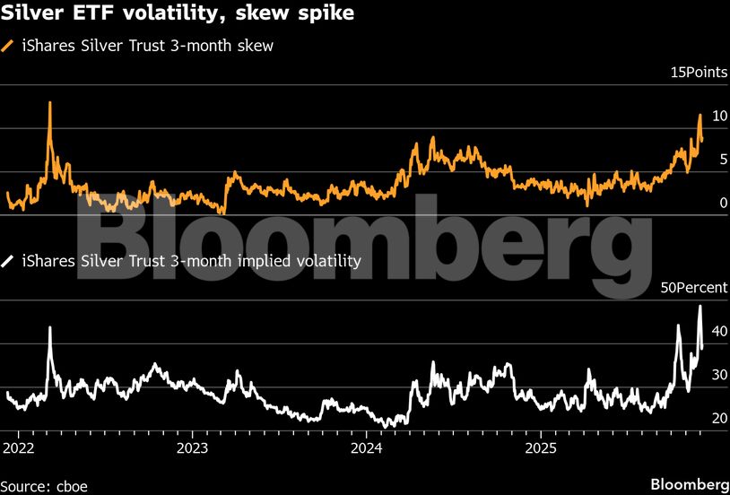 Η μεταβλητότητα των options στο iShares Silver Trust – το μεγαλύτερο ETF αργύρου – «εκτινάχθηκε» στα υψηλότερα επίπεδα από τις αρχές του 2021, όταν για λίγο έγινε «στόχος» των meme traders. Σχεδόν 1 δισ. δολάρια εισέρρευσαν στο ETF μέσα σε μία εβδομάδα, περισσότερο από τα αντίστοιχα κεφάλαια στον μεγαλύτερο χρυσό ETF, δίνοντας επιπλέον ώθηση στις τιμές spot. Οι δυτικοί επενδυτές, που παραδοσιακά έχουν μικρή έκθεση σε πολύτιμα μέταλλα, έχουν στραφεί στα ETF αργύρου, αφήνοντας περιθώρια για ακόμη μεγαλύτερες ροές, σύμφωνα με την Global X.