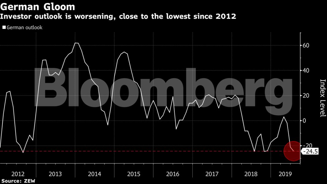 Η Γερμανία έχει βυθιστεί σε πτώση της παραγωγής για περισσότερο από ένα χρόνο, και οι πιο πρόσφατοι αριθμοί δεν προετοιμάζουν για ανάκαμψη. Η Bundesbank εκτιμά ότι η οικονομία συρρικνώθηκε κατά το δεύτερο τρίμηνο και μια άλλη έρευνα επενδυτών υποδεικνύει ότι η οικονομία μπορεί να πέσει σε ύφεση.
