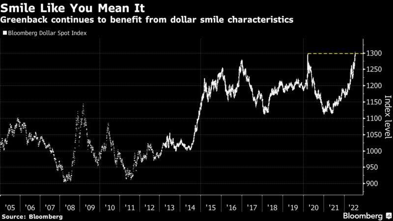 Μερικοί από τους κύριους δείκτες του δολαρίου ενδέχεται να καταγράψουν περαιτέρω αύξηση. Αν και ο δείκτης Bloomberg Dollar Spot Index άγγιξε υψηλό ρεκόρ τον περασμένο μήνα, καταγράφει στοιχεία μόλις από το 2004. Ο δείκτης ICE US Dollar Index, όμως, βρίσκεται σε χαμηλότερα επίπεδα από τα αντίστοιχα της δεκαετίας του ‘80. Το δολάριο θα χρειαστεί ένα περαιτέρω ράλι της τάξης του 54% για να αγγίξει το υψηλό ρεκόρ του 1985 όταν υπεγράφη η συμφωνία Plaza Accord.