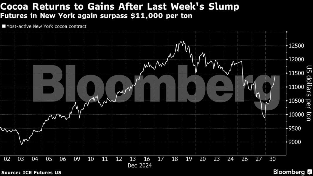 Τα συμβόλαια μελλοντικής εκπλήρωσης για το κακάο αυξήθηκαν λόγω των νέων φόβων για την προσφορά, καθώς οι ανησυχίες για τις καλλιέργειες στη Δυτική Αφρική παραμένουν, συνεχίζοντας το ράλι που έχει καταστήσει το συστατικό της σοκολάτας ένα από τα πιο καυτά εμπορεύματα του έτους.