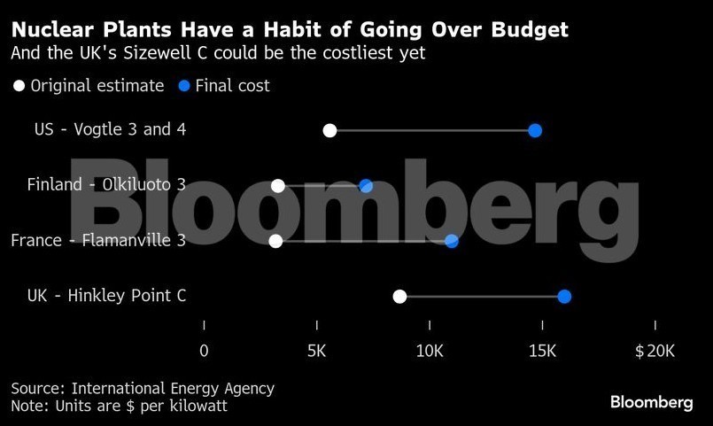 «Οι πυρηνικοί σταθμοί έχουν την τάση να υπερβαίνουν τους προϋπολογισμούς», αναφέρεται χαρακτηριστικά στην έκθεση, σημειώνοντας ότι το Sizewell C στο Ηνωμένο Βασίλειο ίσως εξελιχθεί στο ακριβότερο πυρηνικό έργο έως σήμερα.