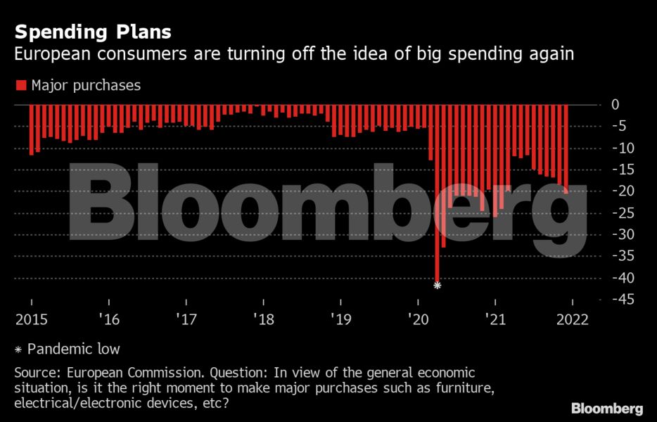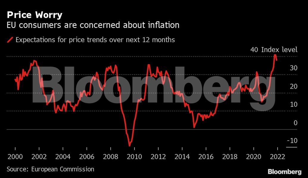 Ο οικονομικός πόνος, όπως αναφέρει το Bloomberg, επιβαρύνει τα νοικοκυριά, τα οποία ανησυχούν περισσότερο για τις τιμές από κάθε άλλη περίοδο αυτόν τον αιώνα, σύμφωνα με έρευνα της Ευρωπαϊκής Επιτροπής. Ο κίνδυνος είναι οι συνέπειες στη ζήτηση κάτι που θα έχει επιπτώσεις στο πόσο γρήγορα η ευρωπαϊκή οικονομία μπορεί να ανακάμψει πλήρως από την καταστροφή που προκάλεσε η πανδημία.