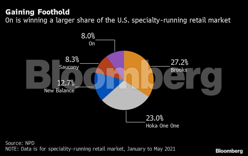 Αν και η On δεν έχει δημοσιεύσει επίσημα οικονομικά στοιχεία, οι αναλυτές υπολογίζουν πως έχει έσοδα συγκρίσιμα με μάρκες όπως η Brooks Running ($850 εκατ) και η Hoka One One ($571 εκατ). Αυτές οι τρεις μάρκες, άγνωστες μέχρι πρότινος στο ευρύ κοινό, είδαν την αναγνωρισημότητά τους και τις πωλήσεις τους να εκτοξεύονται κατά τη διάρκεια της πανδημίας λόγω της ζήτησης για τα προϊόντα athleisure (αθλητικά προϊόντα που προσφέρουν άνεση και μπορούν να φορεθούν και εκτός αθλητικών δραστηριοτήτων).
