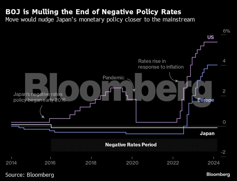 Η Τράπεζα της Ιαπωνίας αναμένεται να καταργήσει το τελευταίο αρνητικό επιτόκιο στον κόσμο τις επόμενες εβδομάδες, σηματοδοτώντας τo τελευταίο κεφάλαιο του μεγάλου πειράματος των κεντρικών τραπεζών με αυτού του είδους τις ανορθόδοξες πολιτικές.