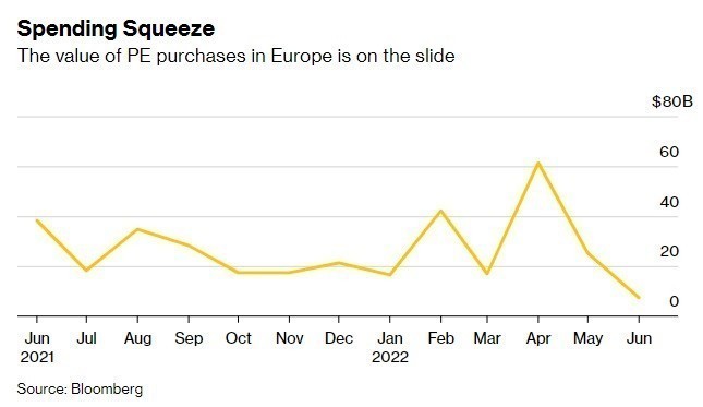 Ενώ η αξία των εξαγορών στην Ευρώπη αυτή τη στιγμή είναι αυξημένη κατά 9% σε σχέση με το 2021, αυτό οφείλεται στην εξαγορά – τέρας της ιταλικής εταιρείας υποδομών Atlantia. Σύμφωνα με στοιχεία του Bloomberg, υπάρχουν σημάδια επιβράδυνσης της αγοράς, με τις αξίας να υποχωρούν κατά 69% τον Ιούνιο.