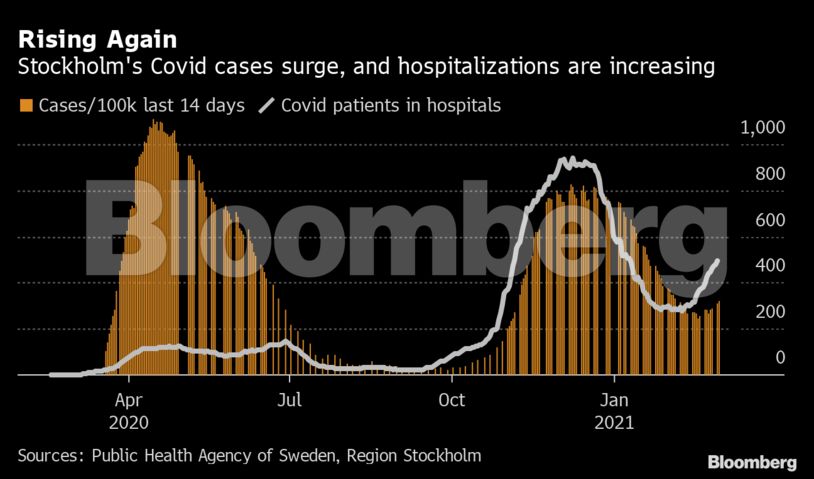 Την προηγούμενη εβδομάδα υπήρξαν 6336 νέα κρούσματα κορωνοϊού μόνο στην Στοκχόλμη, σε σχέση με τα 3225 την πρώτη εβδομάδα του Φεβρουαρίου. Η αύξηση ακολουθεί την αρνητική πρόγνωση του επικεφαλής λοιμωξιολόγου Αντερς Τέγκνελ ο οποίος ανέφερε χαρακτηριστικά πως το τρίτο κύμα δε θα μπορέσει να αποφευχθεί. Η χώρα των 10,4 εκατομμυρίων πολιτών, η οποία αποτέλεσε και ένα μοναδικό πείραμα μιας laissez-faire προσέγγισης θα προσπαθήσει, προφανώς, να συνεχίσει να αποφεύγει τα lockdown.