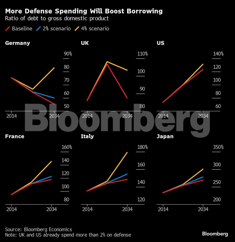 Με τα μέλη της Ευρωπαϊκής Ένωσης να εντείνουν τις προσπάθειες επανεξοπλισμού σε μια προσπάθεια για την αντιμετώπιση της ρωσικής επιθετικότητας, τέτοιες ανησυχίες τείνουν να εμφανίζονται περισσότερο στις πλουσιότερες βόρειες χώρες που ανησυχούν ότι θα καταλήξουν να επιβαρύνονται με τις υποχρεώσεις υπερχρεωμένων ομολόγων τους, όπως η Ιταλία.