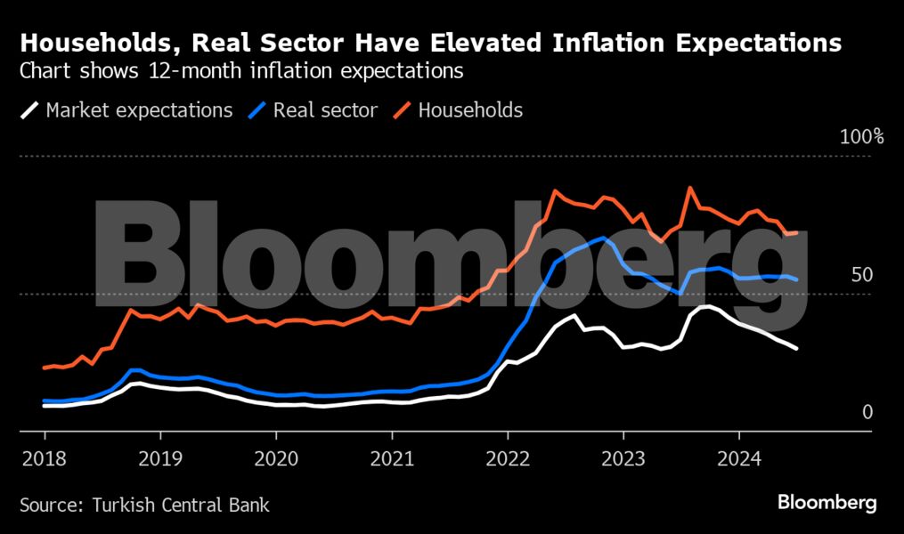 Ο κυβερνήτης Fatih Karahan είπε στο Bloomberg τον Ιούλιο ότι ενώ αναμένει ότι αυτά τα υψηλότερα κόστη θα προσθέσουν 1,5% στον μηνιαίο πληθωρισμό, δεν θα στρεβλώσουν τη συνολική προοπτική. Οι τελευταίες προβλέψεις της κεντρικής τράπεζας αναμένουν τον ετήσιο πληθωρισμό να διαμορφώνεται στο 38% στο τέλος του έτους, με τον Karahan να παρουσιάζει τις νέες προβλέψεις στις 8 Αυγούστου.