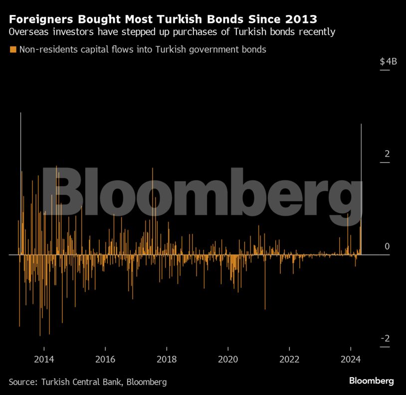Μια μεγαλύτερη παύση από την κεντρική τράπεζα είναι το κλειδί για τη διατήρηση της δυναμικής των ξένων εισροών που εισρέουν σε τοπικά περιουσιακά στοιχεία, καθώς οι επενδυτές εμπιστεύονται τις προσπάθειες της Τουρκίας να επιστρέψει σε μια πιο συμβατική οικονομική πολιτική και να μειώσει τον πληθωρισμό που αναμένεται να κορυφωθεί σύντομα γύρω στο 75%.