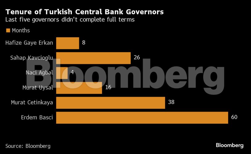 Το 2021, η απόλυση του τότε κυβερνήτη Νατσί Αγκμπάλ προκάλεσε μείωση της ισοτιμίας της λίρας κατά 13% τις επόμενες δύο εβδομάδες, μαζί με ένα άλμα περίπου 60% στο κόστος ασφάλισης του τουρκικού κρατικού χρέους έναντι ενδεχόμενης χρεοκοπίας.