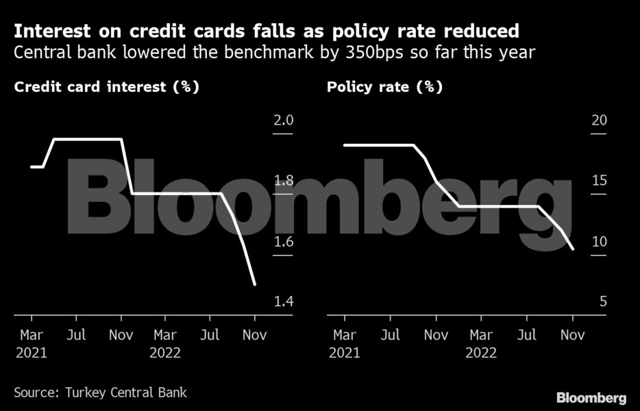 Το αυξανόμενο κόστος σε όλα σχεδόν τα προϊόντα, από παντοπωλεία μέχρι βενζίνη, αναγκάζει πολλούς Τούρκους να χρησιμοποιούν τις πιστωτικές τους κάρτες για να τα βγάλουν πέρα. Η επιδίωξη μιας αντισυμβατικής νομισματικής πολιτικής από την Κεντρική Τράπεζα της Τουρκίας (TCMB) έχει ασκήσει ακόμη μεγαλύτερη πίεση στις τιμές καταναλωτή καθώς η τουρκική λίρα παραπαίει μετά από τρεις γύρους περικοπών επιτοκίων.