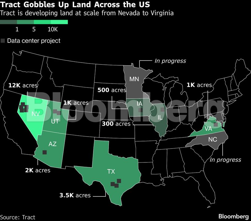 Ιδρυθείσα από έναν βετεράνο των κέντρων δεδομένων μόλις πριν από τέσσερα χρόνια, η Tract Capital επιβλέπει μια εταιρείαπου έχει εξασφαλίσει περισσότερα από 30.000 στρέμματα από τη Νεβάδα έως τη Βιρτζίνια, μαζί με ένα χαρτοφυλάκιο δικαιωμάτων ύδρευσης. Ποντάρει στο ότι η γη με πρόσβαση σε ενέργεια, ή τα ακίνητα που διαθέτουν την απαραίτητη πρόσβαση σε ενέργεια για κέντρα δεδομένων, θα αποδώσουν πλούσια κέρδη καθώς η υποδομή τεχνητής νοημοσύνης καθίσταται απαραίτητη για την οικονομία των ΗΠΑ.