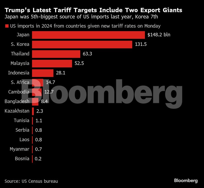 Παράλληλα, η κυβέρνηση διαβεβαίωσε ότι τα προϊόντα που υπάγονται στην έρευνα βάσει του Άρθρου 232 δεν επηρεάζονται από τα επιμέρους εθνικά δασμολόγια. Η νέα λίστα περιλαμβάνει χώρες όπως η Ιαπωνία και η Νότια Κορέα (25%), η Νότια Αφρική (30%) και το Λάος και η Μιανμάρ (40%), ενώ η Ταϊβάν φαίνεται να απέφυγε προσωρινά τα νέα μέτρα.