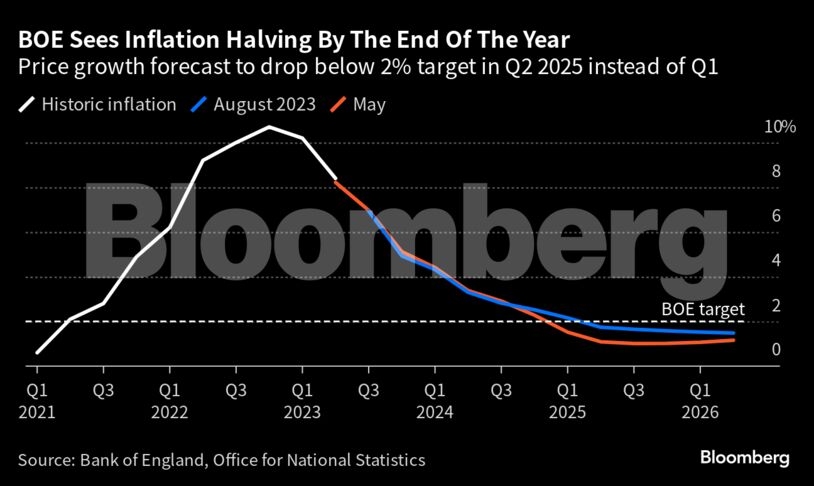 Η BοE βλέπει μείωση του πληθωρισμού κατά το ήμισυ έως το τέλος του έτους.