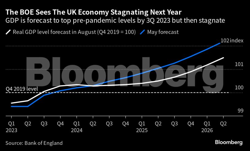 Οι τελευταίες προβλέψεις της BOE είναι πιθανό να κάνουν λόγιο για μια χειρότερη βραχυπρόθεσμη προοπτική, με πολλούς οικονομολόγους του City να προετοιμάζονται για ύφεση.