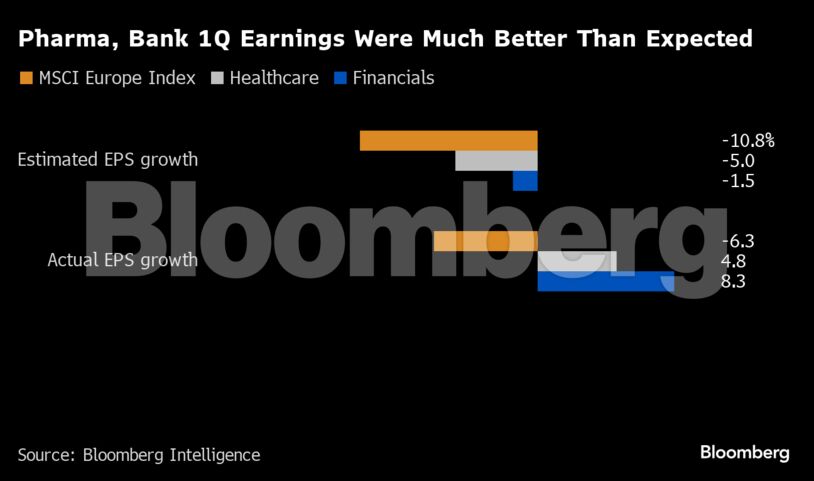 Ο χρηματοπιστωτικός τομέας και η υγειονομική περίθαλψη ήταν οι μόνοι τομείς του δείκτη MSCI Europe Index που σημείωσαν αύξηση των κερδών παρά τις προσδοκίες για μείωση, σύμφωνα με τα στοιχεία του Bloomberg Intelligence.