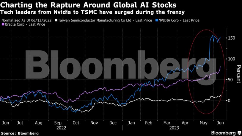 Οι επενδυτές προσηλώνονται σε εταιρείες του κλάδου της τεχνητής νοημοσύνης, από την Nvidia στην Oracle, οι οποίες θεωρούνται πως θα βγουν κερδισμένες από την αυξημένη ζήτηση για μικροτσίπ τα οποία θα χρησιμοποιηθούν στην «εκπαίδευση» των πλατφόρμων και προγραμμάτων Δημιουργικής Τεχνητής Νοημοσύνης η οποία δημιουργήθηκε λόγω του ChatGPT.