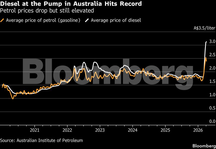 Η μέση τιμή της βενζίνης μειώθηκε κατά περισσότερο από 5% στα 2,40 δολάρια Αυστραλίας (1,66 δολάρια ΗΠΑ) ανά λίτρο την εβδομάδα έως την Κυριακή, καταγράφοντας την πρώτη πτώση από τις αρχές Φεβρουαρίου. Ωστόσο, παραμένει περίπου κατά ένα τρίτο υψηλότερη σε σύγκριση με τις αρχές Μαρτίου, σύμφωνα με στοιχεία του Australian Institute of Petroleum. Το ντίζελ αυξήθηκε λιγότερο από 1% στα 3,13 δολάρια Αυστραλίας, το υψηλότερο επίπεδο από το 2006, αν και η άνοδος επιβραδύνθηκε σε σχέση με το προηγούμενο διάστημα.