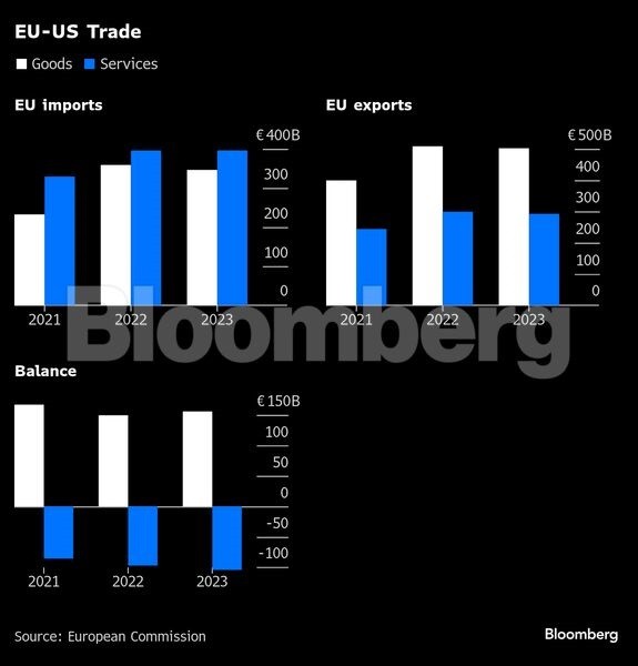 Ο Πρόεδρος Τραμπ κατηγορεί την ΕΕ ότι εκμεταλλεύεται τις Ηνωμένες Πολιτείες, επιμένοντας στη μείωση του ευρωπαϊκού πλεονάσματος στο εμπόριο αγαθών, την άρση εμποδίων όπως ο ΦΠΑ και η απλοποίηση του ρυθμιστικού πλαισίου για τις επιχειρήσεις. Από την πλευρά της, η Ευρωπαϊκή Ένωση δηλώνει πρόθυμη να διαπραγματευτεί, ωστόσο διαμηνύει πως θα απαντήσει με αντίμετρα εάν δεν επιτευχθεί μια ικανοποιητική συμφωνία.