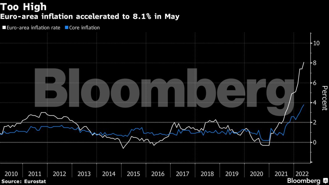 Προηγούμενες παρατηρήσεις της προέδρου της ΕΚΤ, Κριστίν Λαγκάρντ, έδειχναν επικείμενο τέλος στις αγορές ομολόγων, ακολουθούμενες από αυξήσεις των επιτοκίων κατά τρίμηνο, τον Ιούλιο και τον Σεπτέμβριο.