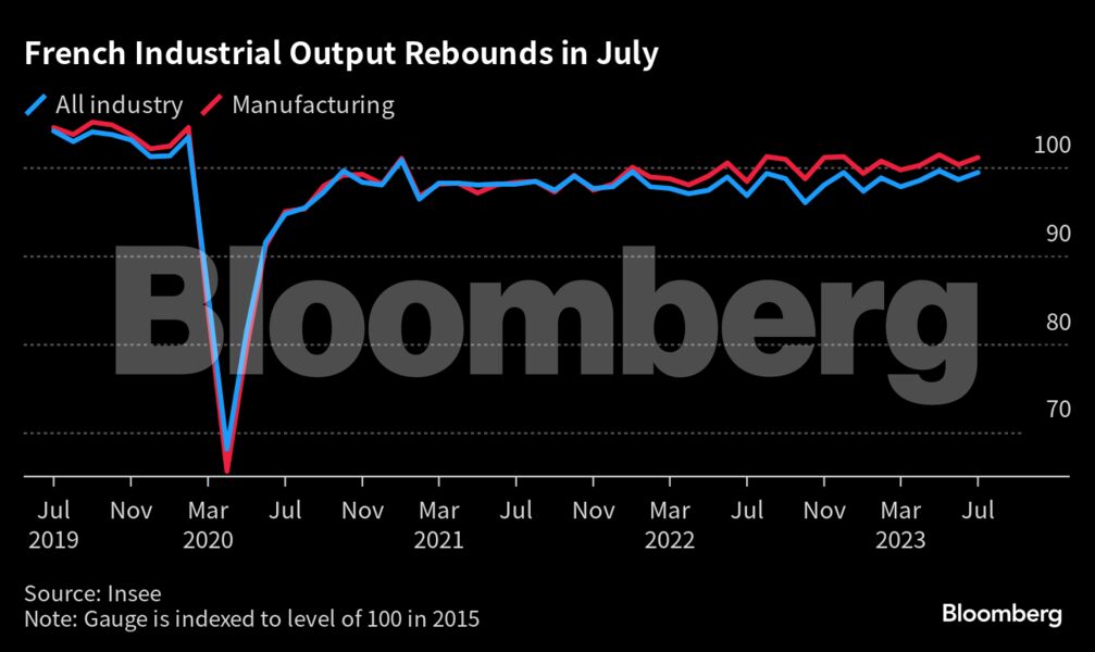 Ενισχυμένη από τους κλάδους των αυτοκινήτων και των φαρμάκων και την ανάκαμψη των υπηρεσιών κοινής ωφέλειας και της ενέργειας, η γαλλική παραγωγή αυξήθηκε κατά 0,8% τον μήνα, έχοντας μειωθεί τον Ιούνιο. Οι οικονομολόγοι που συμμετείχαν σε έρευνα του Bloomberg είχαν έκαναν λόγο για ανάπτυξη μόλις 0,1%.