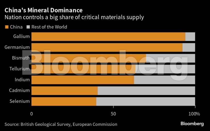 Η Κίνα, σύμφωνα με το Bloomberg, βρίσκεται παράλληλα και στο Top 3 των χωρών οι οποίες ελέγχουν ορυκτά όπως γάλλιο και γερμάνιο τα οποία βρίσκει κανείς σε smartphones, τηλεοράσεις, μικροτσίπ και δορυφόρους.